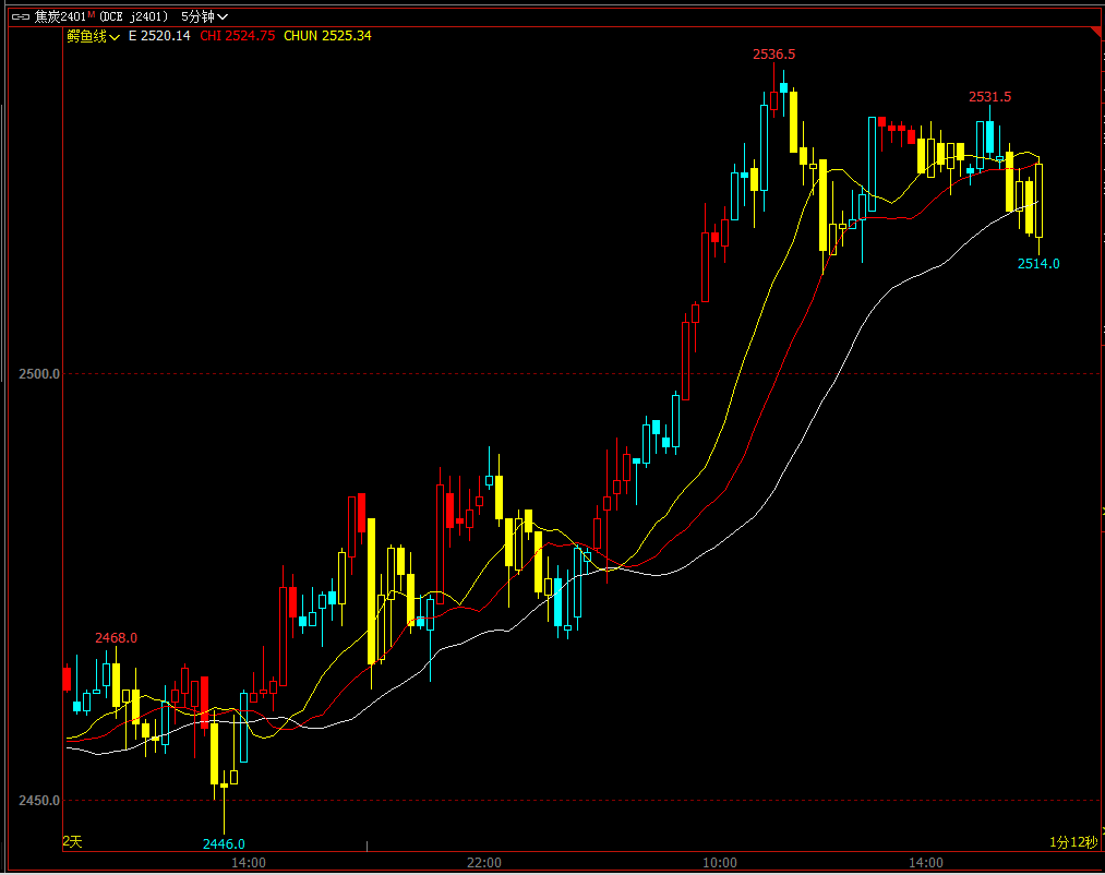 下图展示的是根据常见的方式改编而成的期货技术分析指标鳄鱼线(Alligator Indicator),适用于文华6软件。