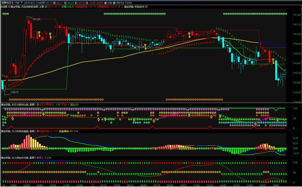 外汇英镑兑日元2019年10月22号15分钟技术指标分析走势图