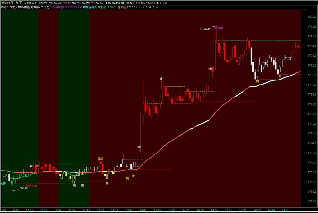 商品期货焦炭19年10月25号1分钟技术分析走势图