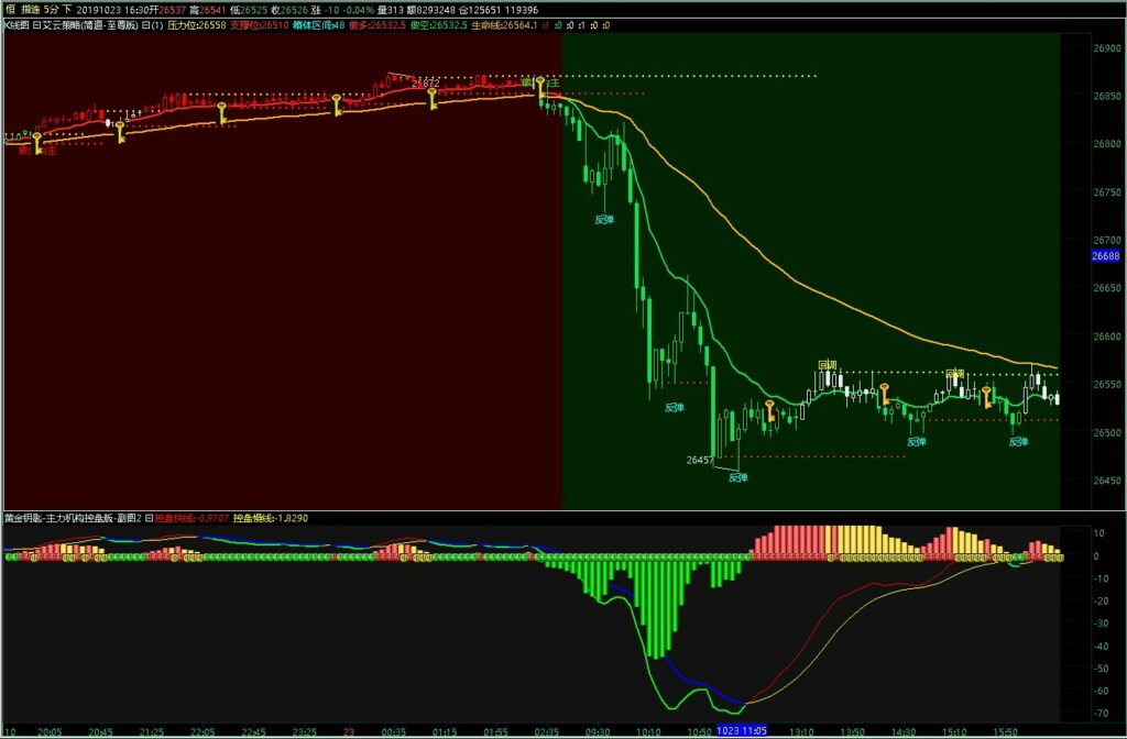 恒指期货19年10月22号至23号5分钟行情分析走势图
