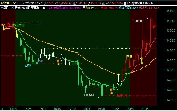 艾云策略指标——现货黄金5分钟走势图