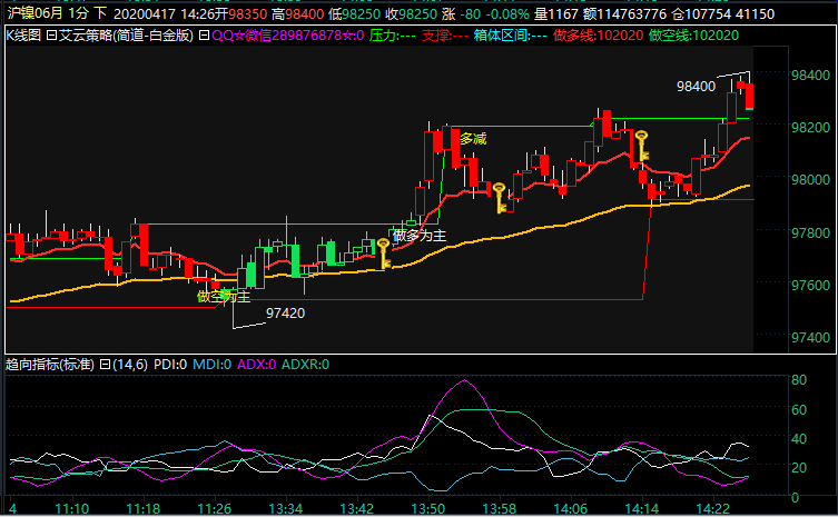 当ADX值在50以上忽然拐头向下时,此时不论股票、期货价格涨跌都有一波相反的行情出现。