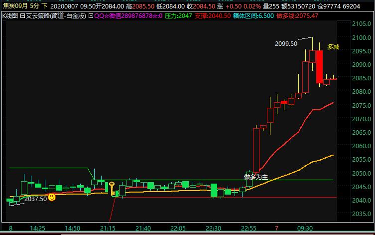 艾云策略白金版——期货焦炭5分钟行情分析走势图