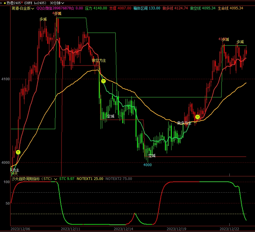 下面是结合主图艾云策略白金版与副图沙夫趋势周期技术分析指标的效果图,大家探讨下: